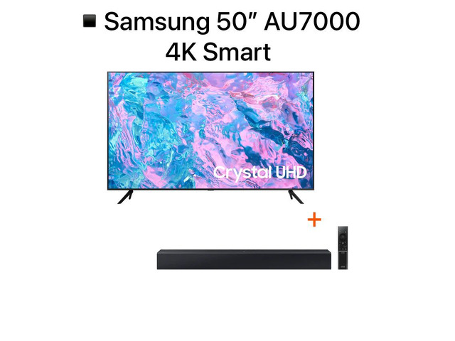 TV SAMSUNG 50" AU7000 CRYSTAL UHD 4K SMART (2022) + FREE SAMSUNG HW-C400 2CH 40W SOUNDBAR (2023)— 48.000MZN Contacto : 821050022 Entregas grátis dentro da cidade de Maputo Enviamos para todas as províncias Sob custo adicional